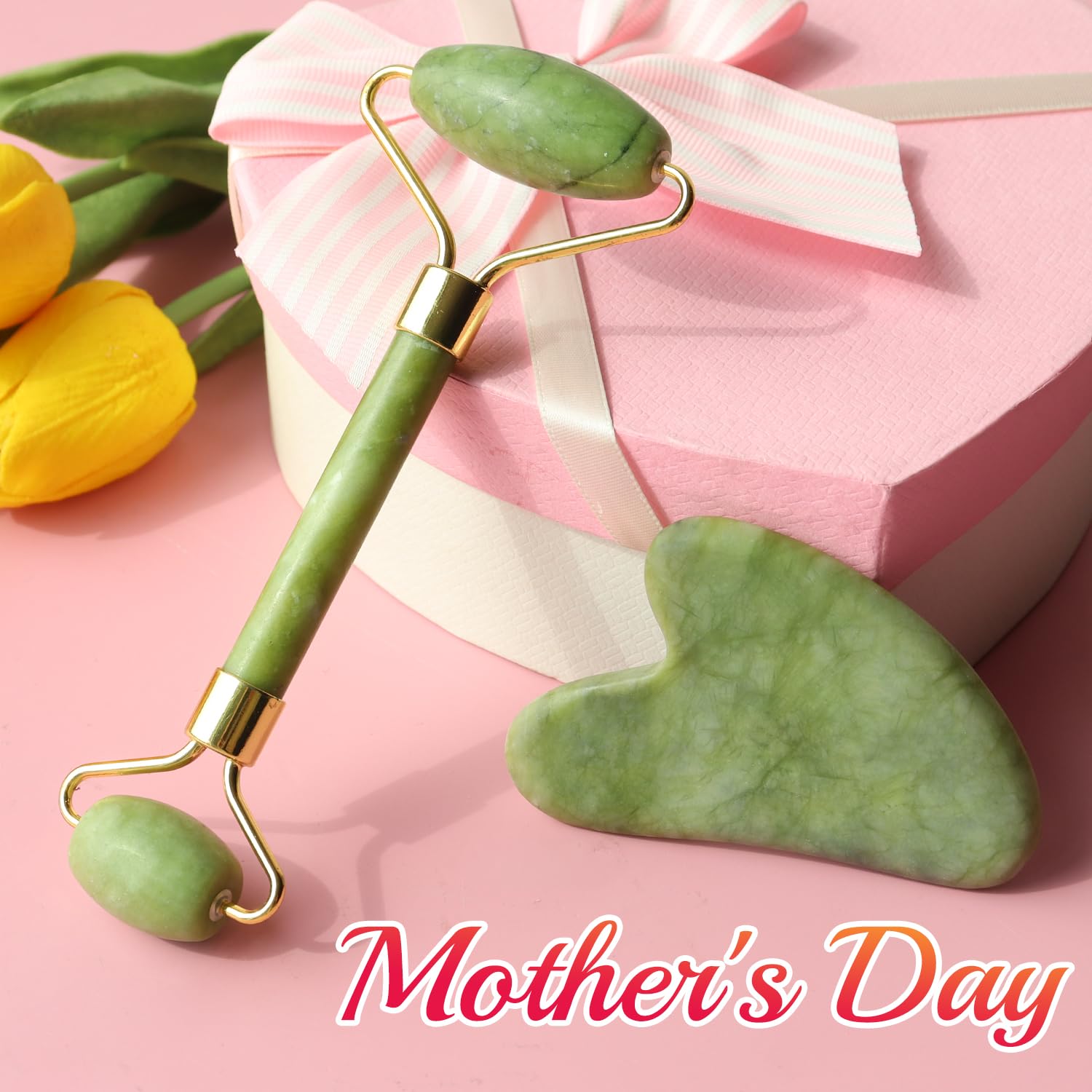 BAIMEI IcyMe Gua Sha & Jade Roller Facial Tools Face Roller and Gua Sha Set for Puffiness and Redness Reducing Skin Care Routine, Self Care Gift for Men Women – Green