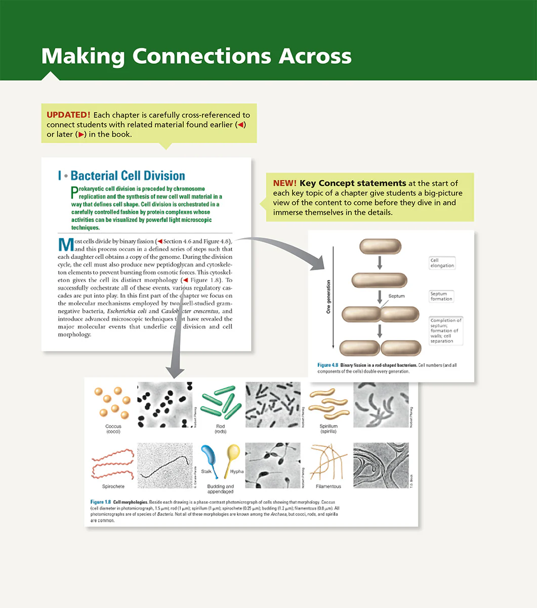 This edition explores the genomics revolution Brock Biology of Microorganisms sets the standard for accuracy, impeccable scholarship, a visually stunning art program, and the use of cutting-edge research to illustrate basic concepts. The text guides students through the six major themes of microbiology – Evolution, Cell Structure and Function, Metabolic Pathways, Information Flow and Genetics, Microbial Systems, and the Impact of Microorganisms – as outlined by the American Society for Microbiology Conference on Undergraduate Education (ASMCUE). This robust and modern approach takes students through the genomics revolution and ‘omics’ maze that has transformed microbiology and shares powerful tools that microbiologists use to probe deeper and further into the microbial world than ever before. The 16th Edition expands the extraordinary art program to ensure students experience microbiology as a visual science while providing an overview of the microbial world with basic principles that students all need to master. Each chapter’s theme focuses on a recent discovery that connects students with the most current science and engages them with exciting, real-world topics. Samples Download the detailed table of contents > Preview sample pages from Microbiology: An Introduction, Global Edition