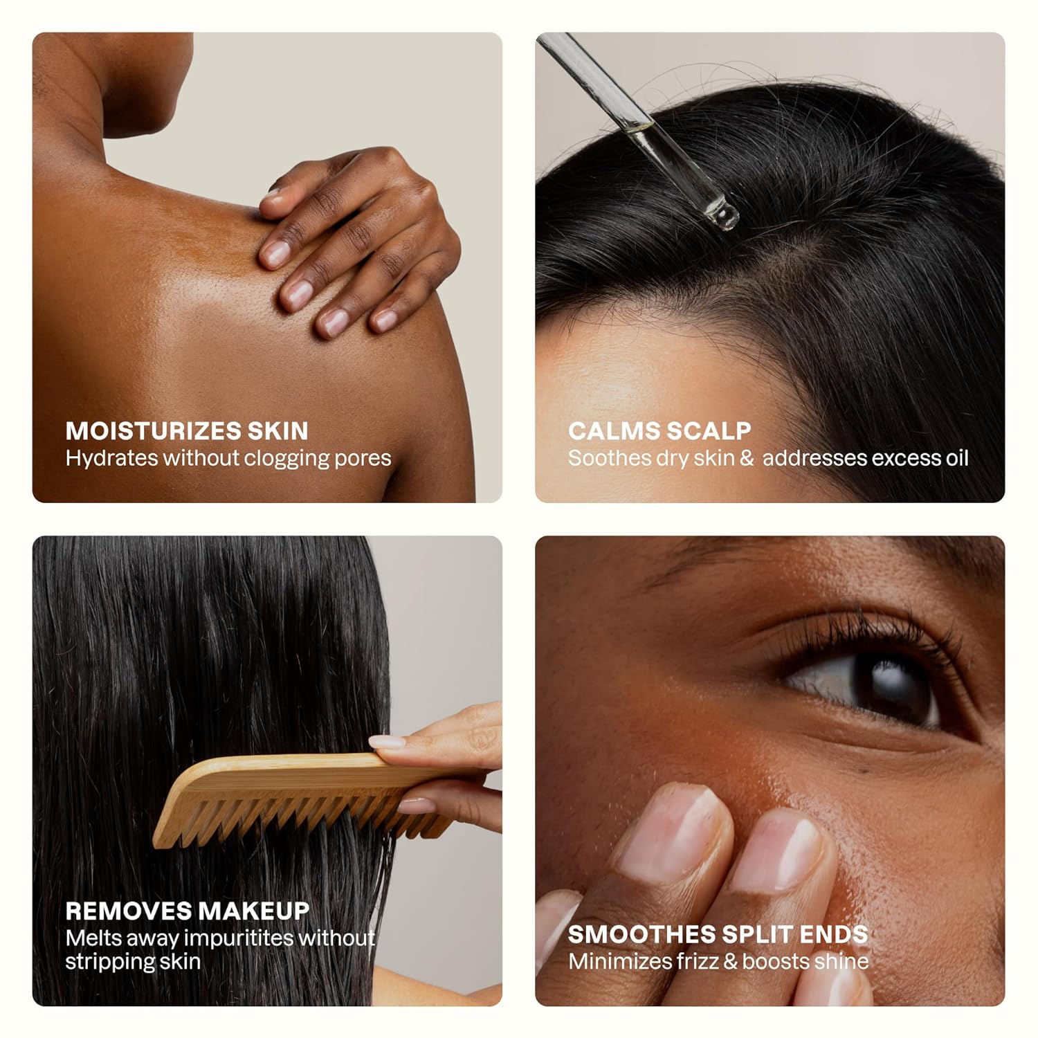 Jojoba oil is great for hair—adding shine, reducing grease, and protecting against split ends. A scalp massage with jojoba oil can help clear clogged pores and follicles.