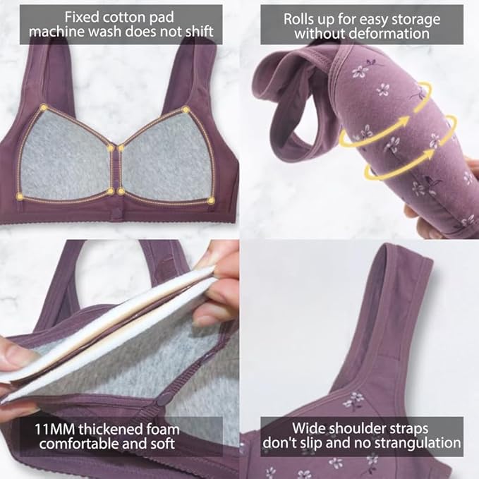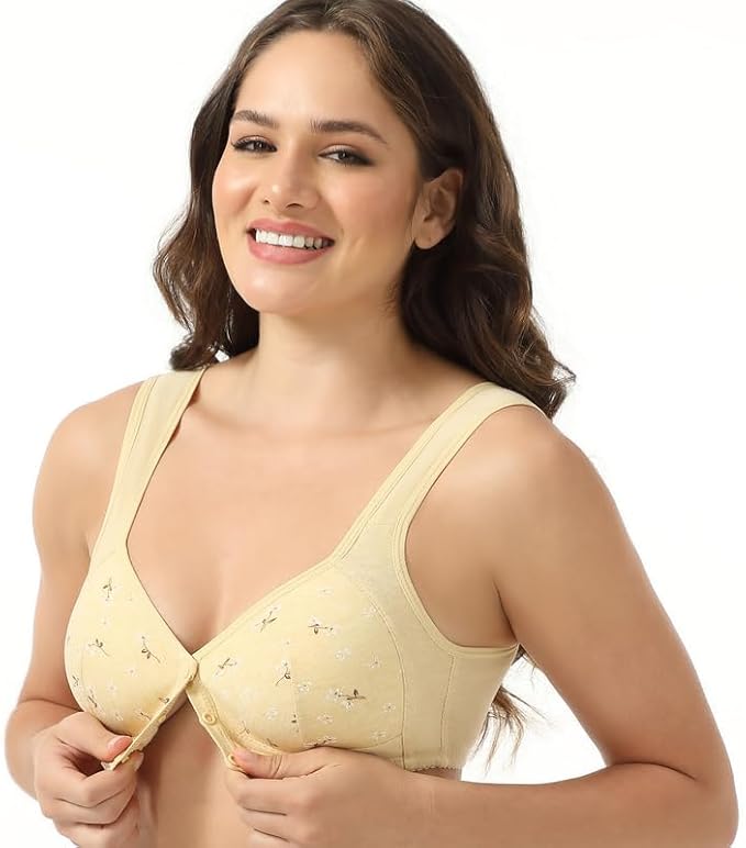 Daisy Bras for Women, Front Snap Closure Padded Bra for Older Senior Women, No Underwire Comfortable Bra