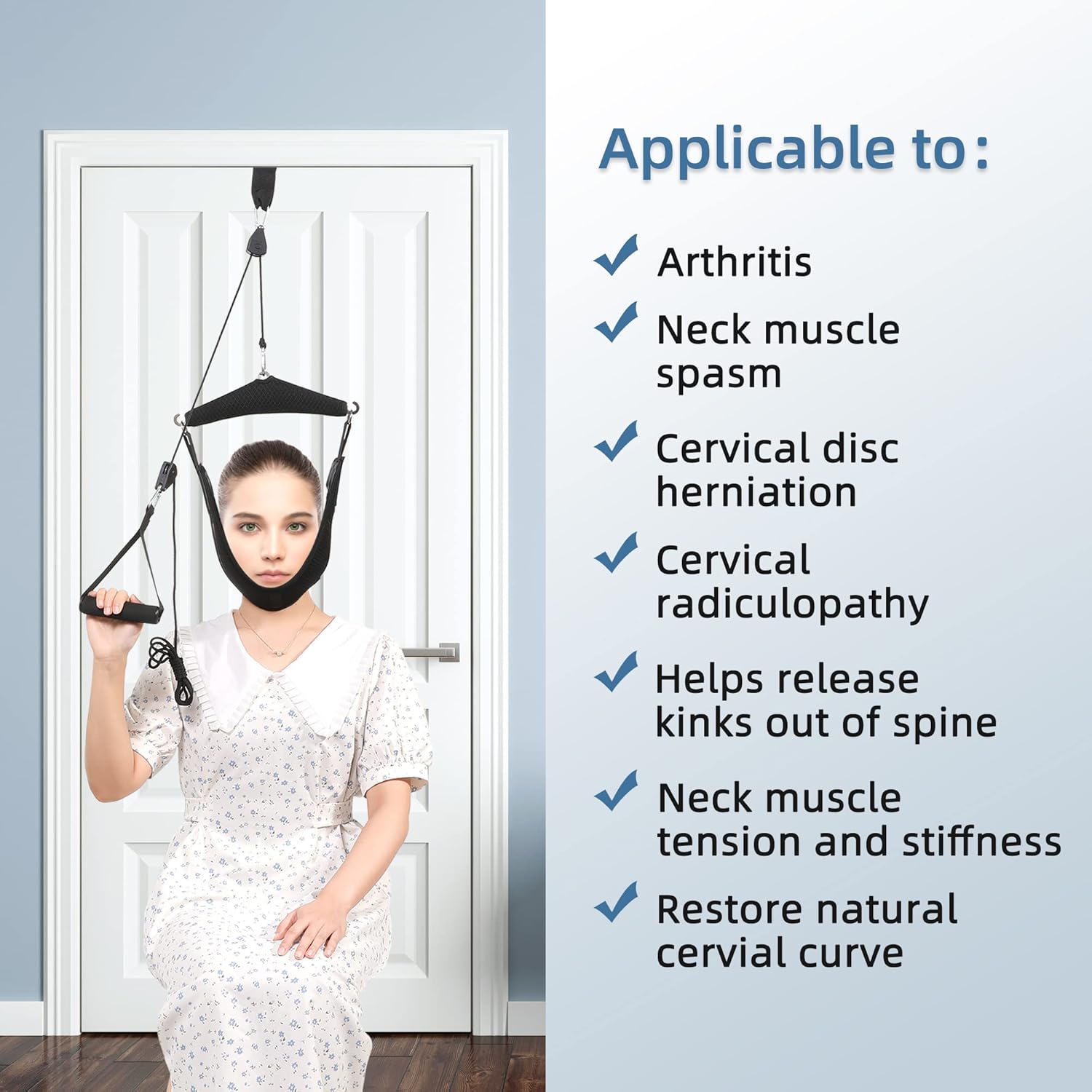 Fanwer Upgraded Neck Stretcher Cervical Neck Traction Device,Double Ratchet Neck Tension Relief Portable Over The Door Device,for Physical Therapy,Neck Pain Relief, Vertebrae Disk Herniation,Black