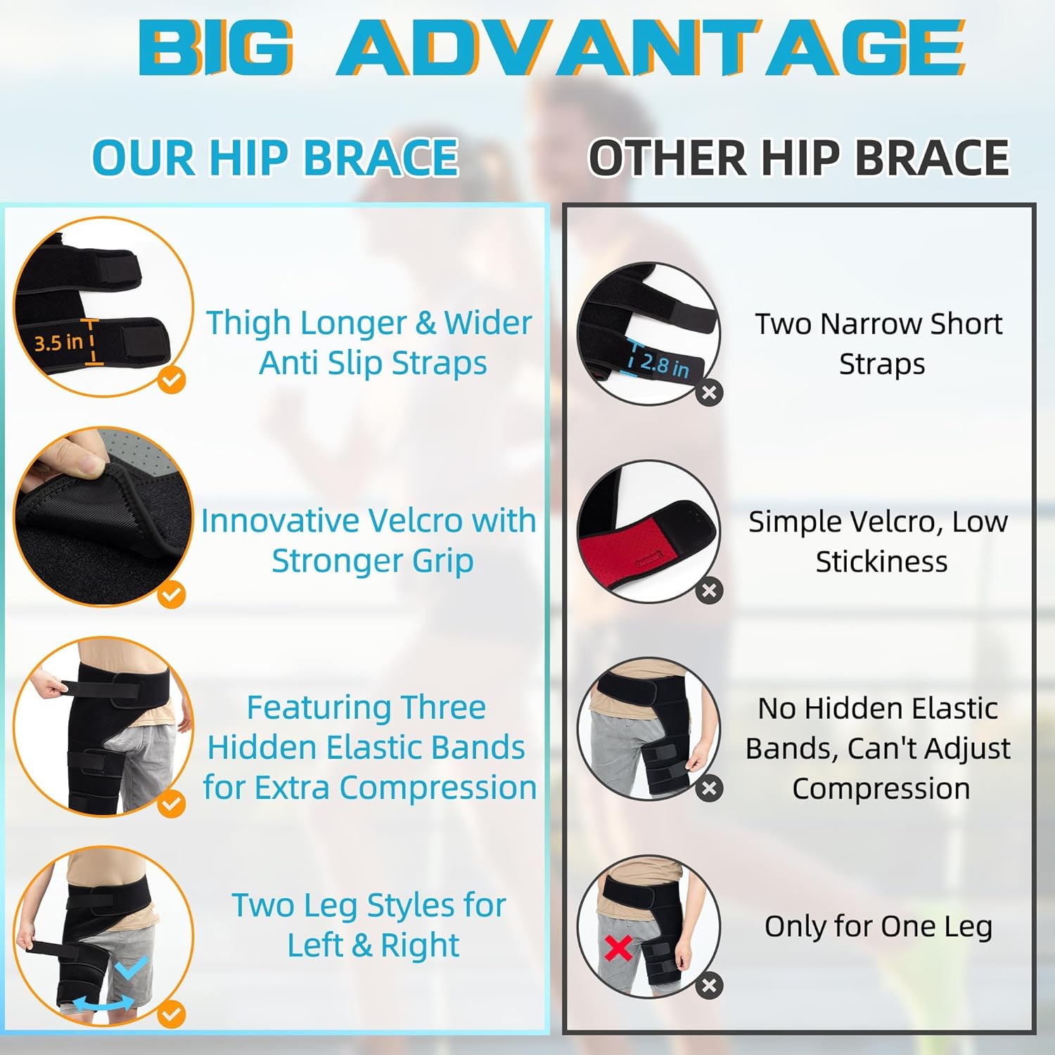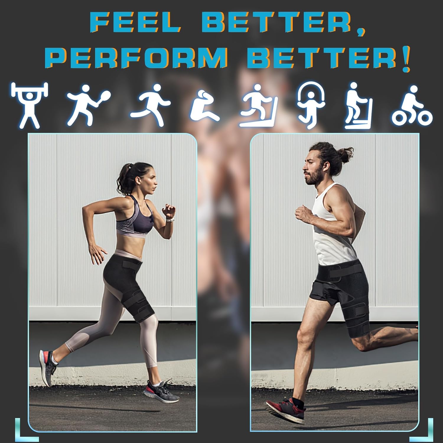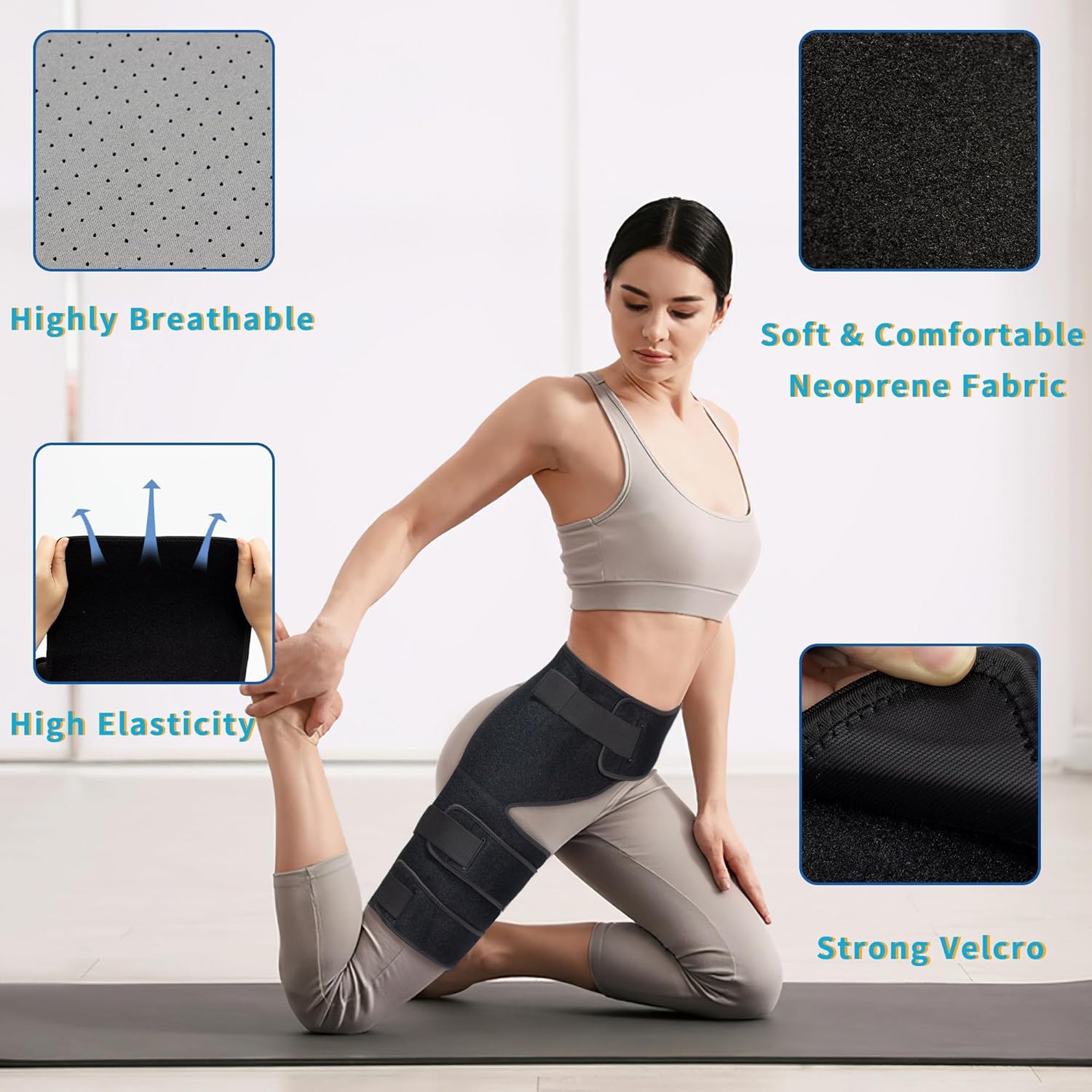 - 𝗣𝗥𝗘𝗩𝗘𝗡𝗧 𝗔𝗡𝗗 𝗥𝗘𝗟𝗜𝗘𝗩𝗘: Targeted compression is the key factor for fast recovery. Hiball Hip & Thigh brace can effectively promote blood circulation, increase oxygen supply to the hip, groin, thigh, hamstring, quad, buttock, and thereby help alleviate and prevent tendinitis, sciatica, bursitis, cellulite, varicose veins, swelling, edema, piriformis syndrome, hip labral tear, hip and hamstring strains, groin pull, pain, quadriceps, thigh pain, thigh contusion, and sports injuries