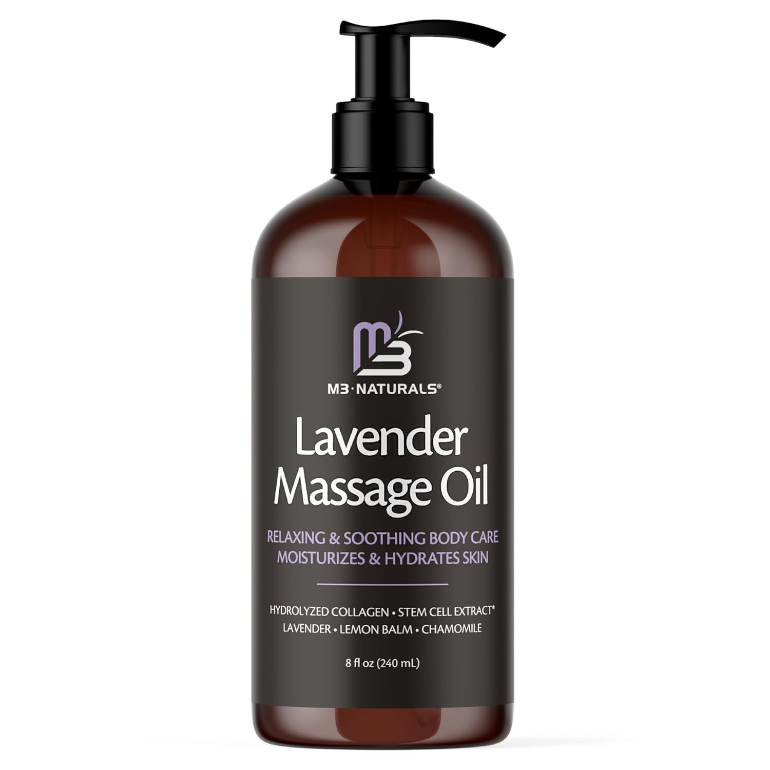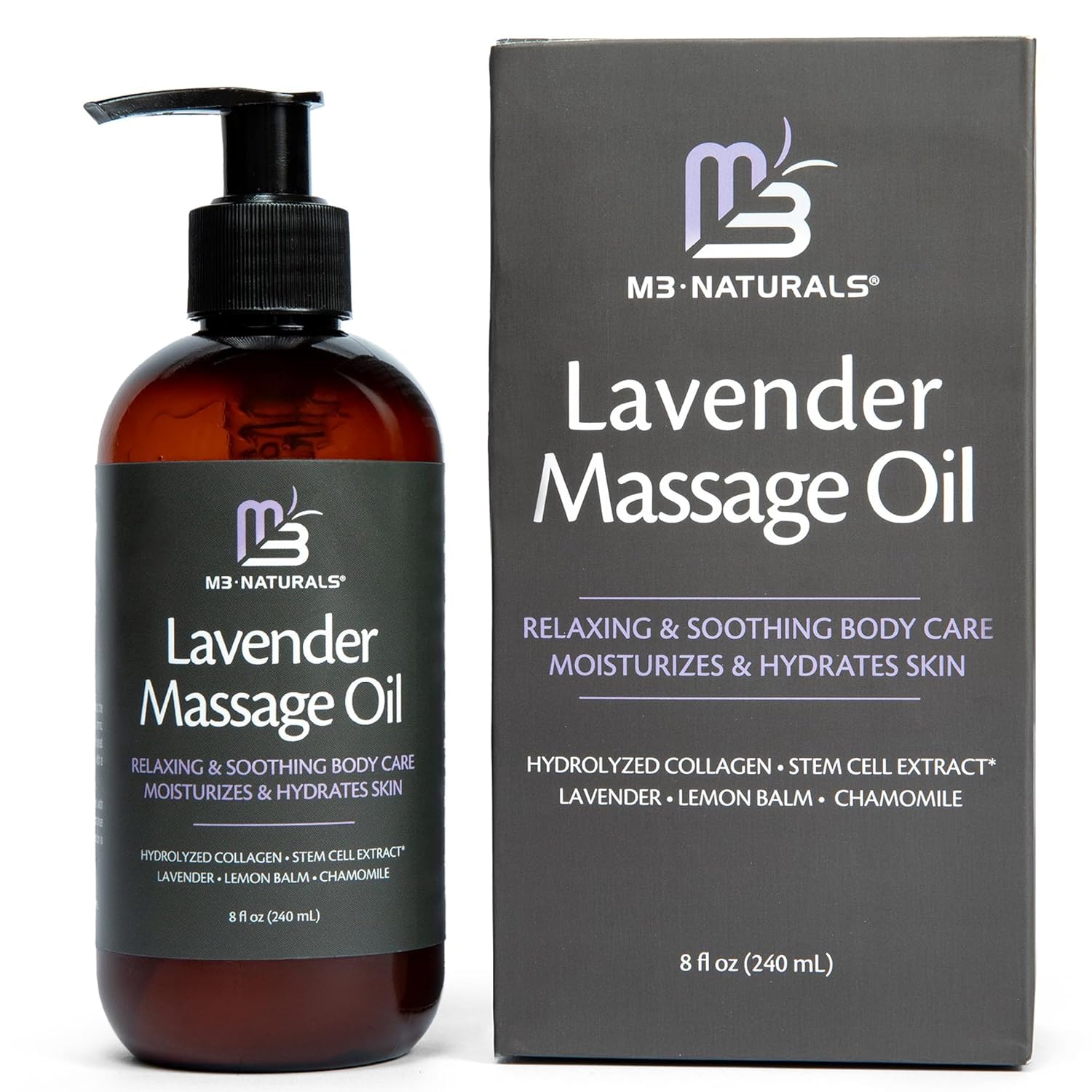 Lavender Massage Oil with Collagen and Stem Cells, Skin Tightening Therapy for Bum, Thighs, and Belly, Fast-Absorbing Cellulite Oil by M3 Naturals