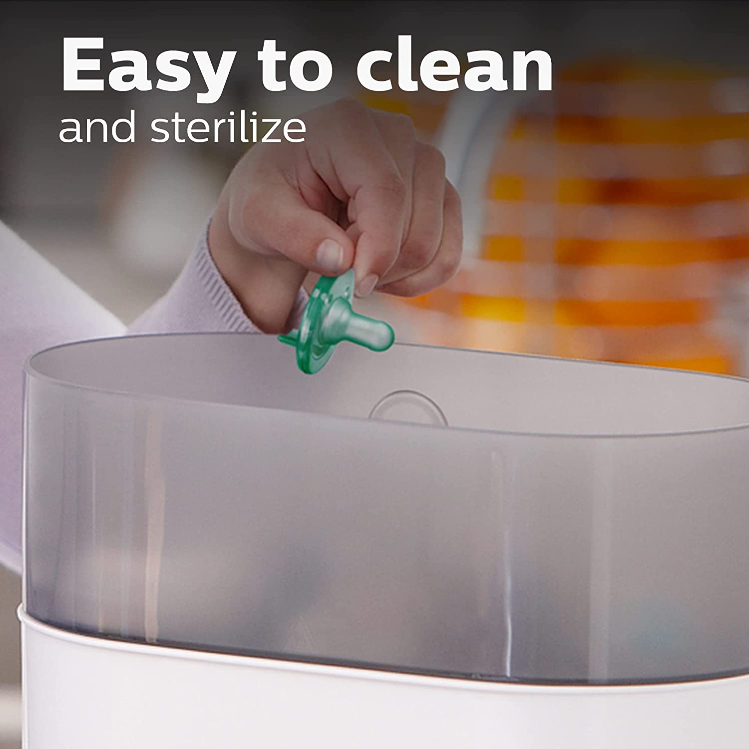 Easy to sterilize for extra hygieneKeeping your little one’s Soothies and pacifiers clean is easy. Simply put them in your sterilizer or submerge in boiling water. |