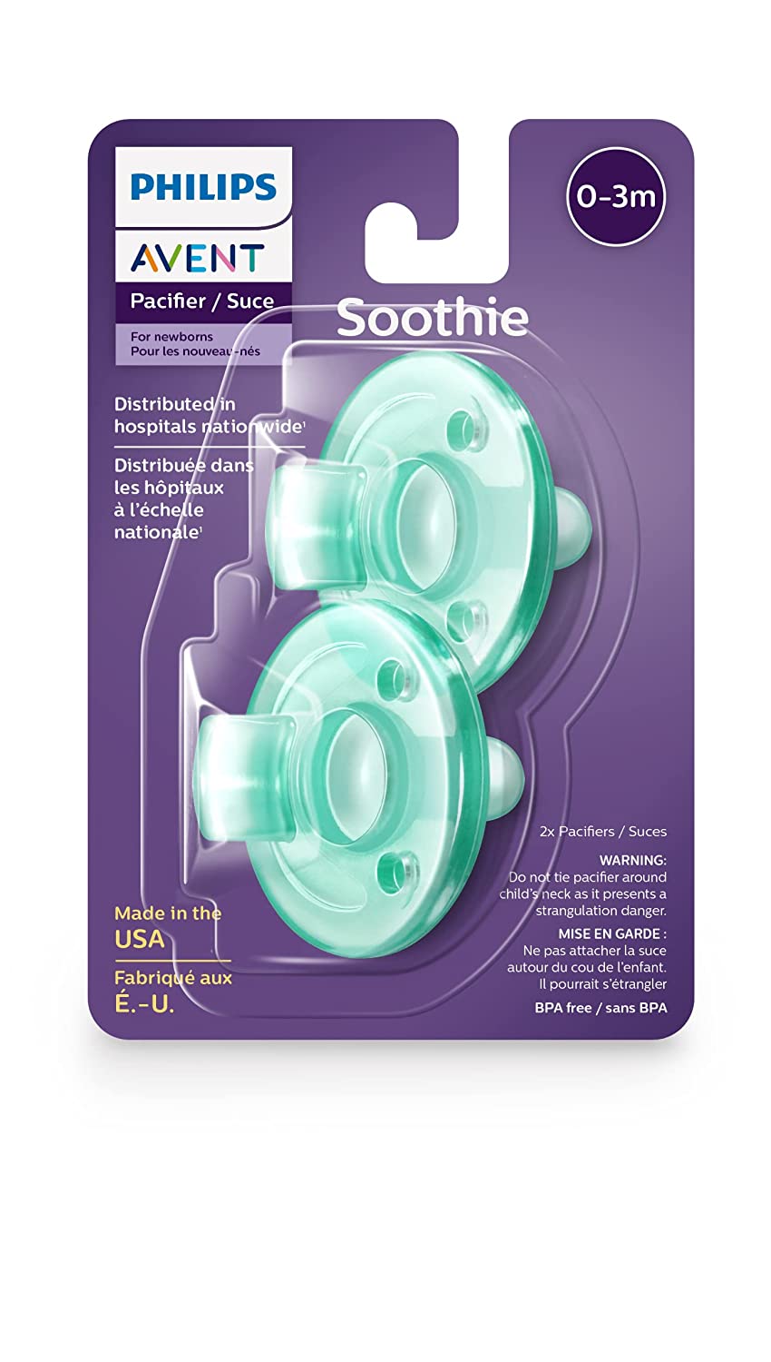 The Philips Avent Soothie is used by medical professionals to calm newborns in hospitals nationwide. It’s made of BPA-free, medical grade silicone, and it has a unique one-piece design that’s easy to clean