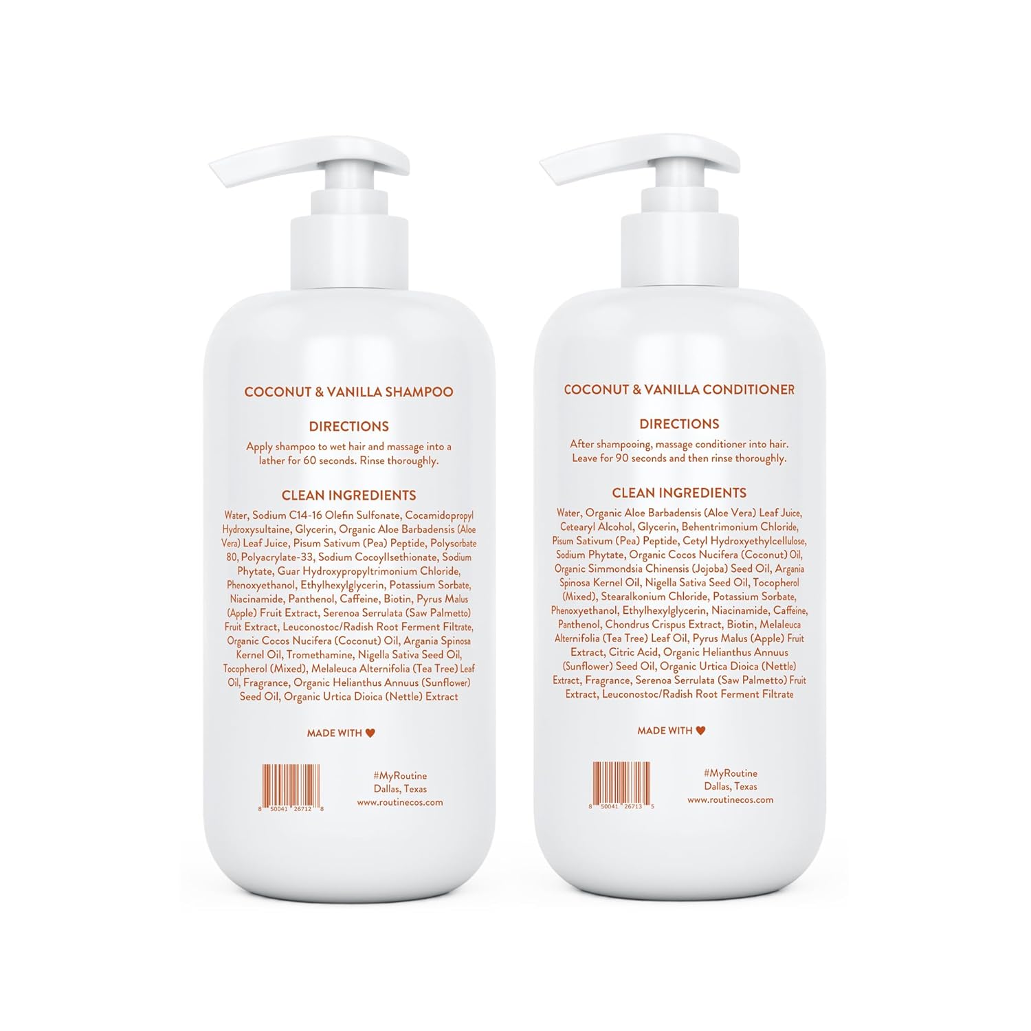 Routine Wellness Anti-Thinning Shampoo and Conditioner Set for Thinning Hair – Biotin DHT Blocker Women & Men – Color Safe Shampoo for Hair Loss & Healthier Hair – Coconut & Vanilla (Pack of 2)