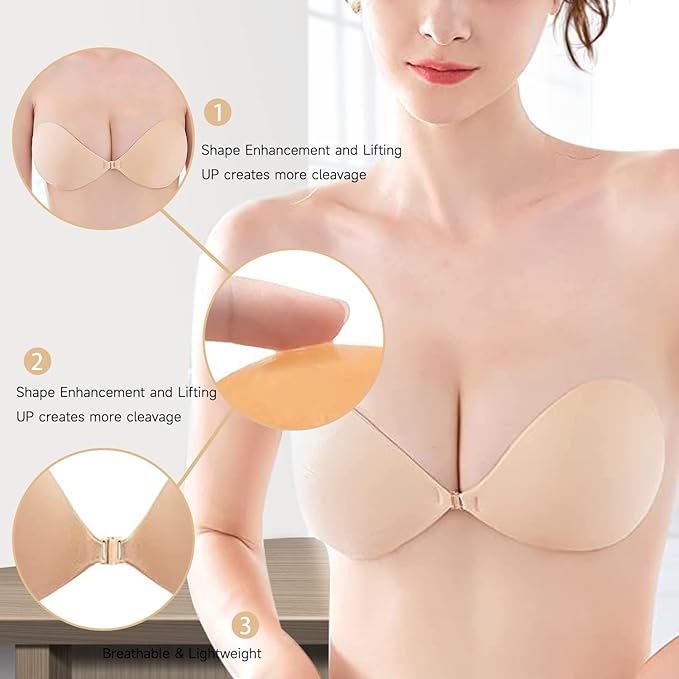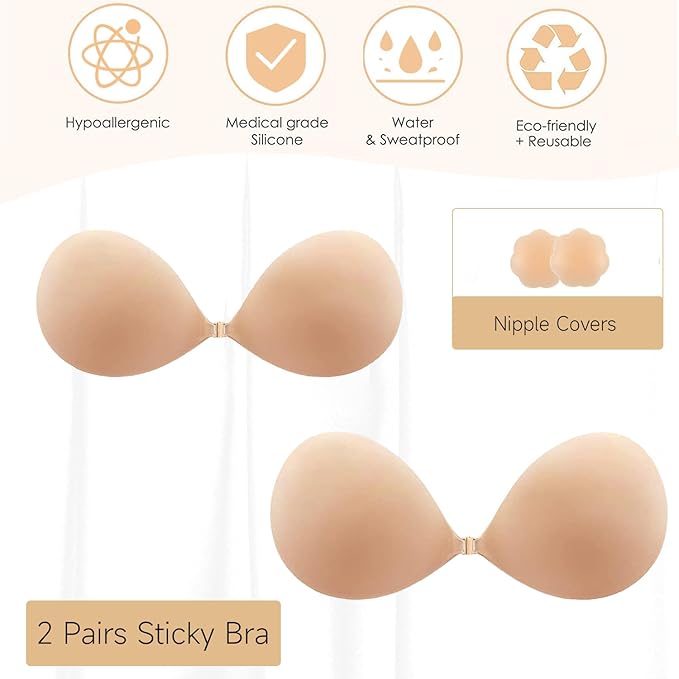 Sticky Bra, Backless Strapless Bra Push Up, Adhesive Invisible Lift Up Bras 2 Pieces
