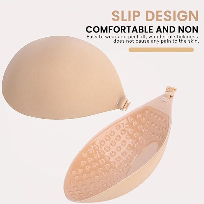 - Easy to clean and reusable:This braless bra can be reused many times and remains well adhered. Simply wet the sticky surface with water and mild detergent, then air dry it and place the plastic backing over the sticky part