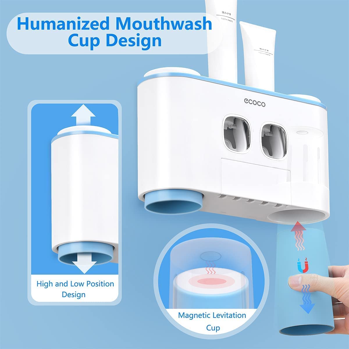 - ????【Two Toothpaste Dispensers】The bathroom toothbrush holder set has two automatic toothpaste dispensers for toothpaste 0.3-0.5 inches in diameter. Toothpaste dispenser with vacuum pump technology allows your child to squeeze out the right amount of toothpaste every time, preventing toothpaste waste