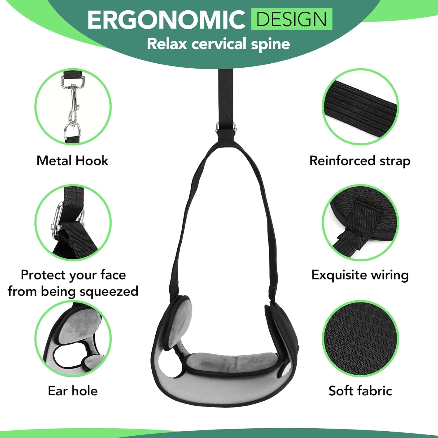 - HIGH QUALITY: The neck stretcher is made of premium velvet mesh fabric which is breathable, soft and skin-friendly. With ergonomic design, it can fit perfectly with your neck to provide comfort even after long-time use. There are ear holes on both sides, so it is convenient for you to listen to music or answer phones without taking off neck stretcher.