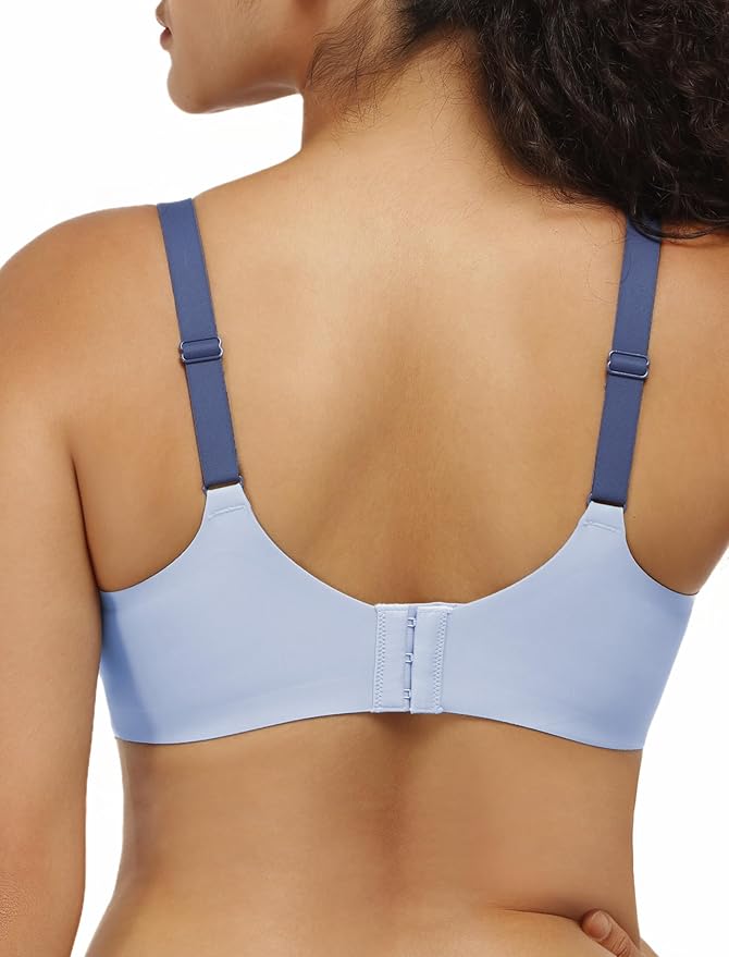 Women No Underwire Bra Comfort Seamless Full Coverage Mesh Bralette Bra with Adjustable Contrast Color Strap S-4XL