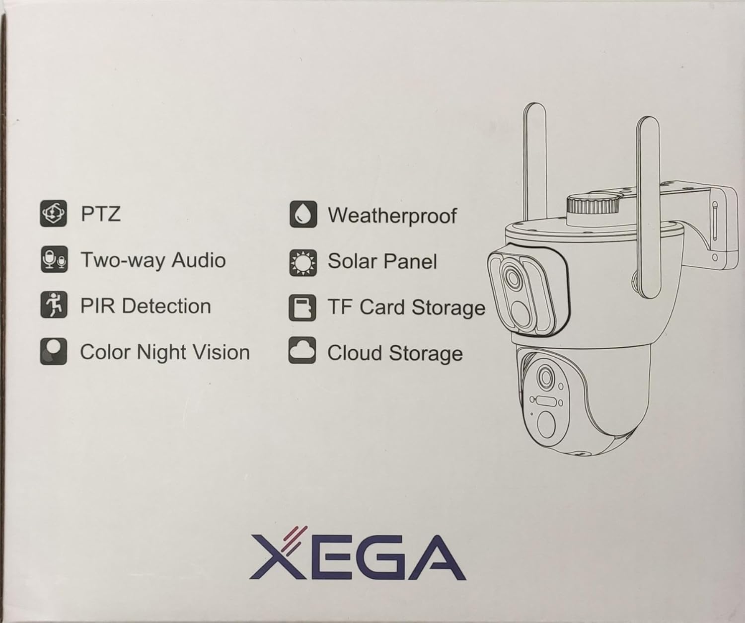Xega 4G Cellular Security Camera【Dual Lens】 Outdoor with SIM Card, 14400mAh 2K HD Wireless Solar 4G LTE Camera, PTZ Motion Dtetection Spotlight Siren TF Cloud Storage,Only Support The Built-in SIM